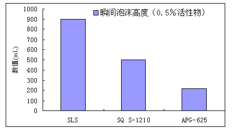 作为独特的护发季氨盐,Suga Quats系列具有发泡能力,因而可以用于香波、沐浴露以及其他的个人清洁护理品中。传统阳离子表面活性剂应用于洗护配方中一般发泡能力弱,甚至消泡。但是Suga Quat在所有体系中均能增泡,并且相同活性含量的条件下,泡沫高度可达SLS的一半。结果如下图所示: