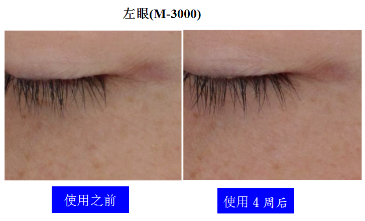 每日1次使用含有3% 棕榈酸多胜肽M- 3000的面膜于左侧半张脸,为期4周;