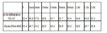 Hydro PGA-H80、吡咯烷酮羧酸钠(NL-50)在洗剂中的对皮肤的保湿能力测试如下(添加量1.0%):