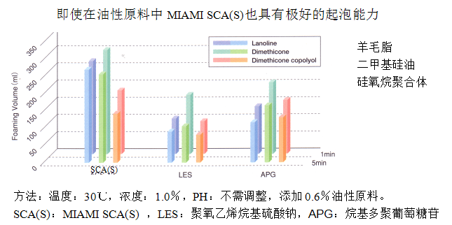 用于做测试的香波配方包含有MIAMI SCA(S),可使香波具有更好的泡沫量&调理能力以及对于干发的保湿能力也会提高